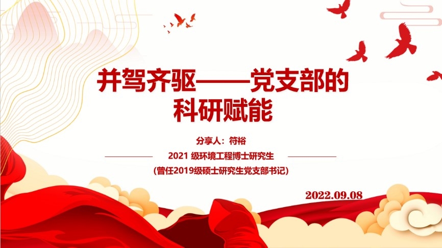 这一次会议是我步入研究生生涯的第一次党员活动,这次活动使我受益匪浅,聆听刘婕书记关于伟大建党精神的阐述和“明理 增信 崇德 力行”的总结。有幸听到了符裕师兄和吴海鹏师兄关于党支部科研赋能和学术之外与生活之中的动情讲解。印象深刻的是二位师兄的脱稿阐述,让我感受到了学术水平和表达能力的并驾齐驱,他们抑扬顿挫的生动分享,让我对研究生生活充满了向往之情,使我感受到了强大的号召力。“痛苦不是成本,失去机会才是”,是的,我将不忘今日之收获,做一个积极努力温柔坚定的生环学子。