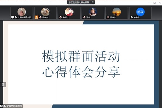 会议最后,路葵老师对会议内容进行了总结陈词。路老师表示同学们平常参加志愿者活动,如环教课志愿者、抗疫志愿者也是在用自己所学服务于社会的生动实践。尽管离毕业还有一年多时间,希望大家为就业早做准备,用实习实践丰富经历,以便在择业时能更从容、有底气地踏入社会。广大团员青年要在实践中进步,在磨砺中逐步成长为有理想、敢担当、能吃苦、肯奋斗的新时代好青年。不论是坚守科研岗位还是在社会中锻炼,大家都在用自己的双手,用青春的能动力和创造力激荡起民族复兴的澎湃春潮,用青春的智慧和汗水打拼出一个更加美好的中国!