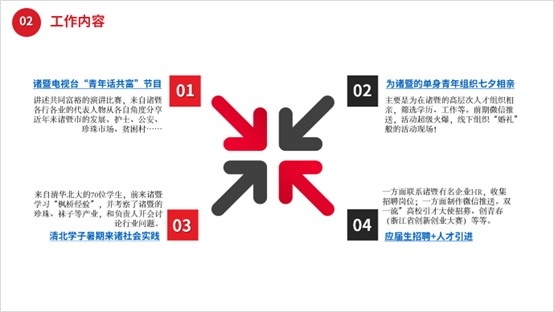 周李奕同学分享了自己在诸暨团市委实习和第五届进博会志愿者的经历。在实习期间,李奕同学主要做了以下四项工作:组织诸暨电视台“青年话共富”节目、为诸暨的高层次人才举办七夕相亲活动、接待来自清北学子来诸暨暑期实践以及组织招聘、人才引进、创新创业大赛等活动。从公务员的角度分享了城市运行的背后工作,尤其是诸暨市应届毕业生招聘的岗位汇总表和大家的就业息息相关。此外也介绍了一些公务员的生活缩影和单位情况。