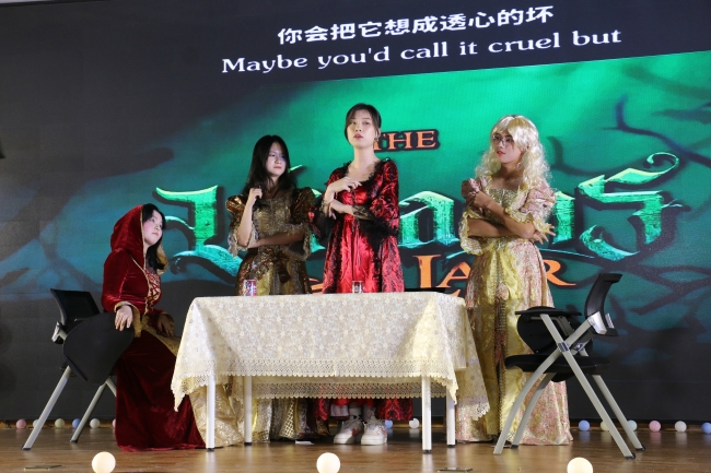 音乐剧《后妈的茶话会》用深厚、饱满的嗓音,犀利而又富有张力的表演,精彩地演绎了不同风格的童话。随后,搭配着架子鼓重金属感的伴奏,歌曲《每个眼神都只身荒野》以动感的旋律带动了现场气氛。歌舞表演《苏州河上一座桥》风格一转,姑娘们顾盼生辉、摇曳生姿,明媚娇艳惹人怜。