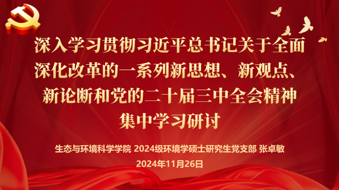为激励学生党员传承改革精神,勇于担当使命,奋力开创未来,2024年11月26日晚,yl6809永利官网2024级环境学硕士研究生党支部在闵行四教211,举办“学习三中全会精神,探索航天科技,聚焦进博会”主题党日活动,活动由支部书记徐寒雨主持。