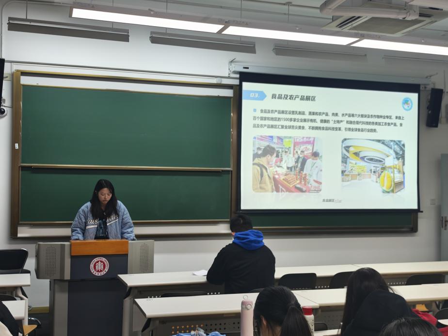 活动第三部分,廖雪宇同学首先分享了自媒体博主逛进博会的视频,拉进了各位党员的距离,让支部党员对进博会有了初步了解。随后,廖雪宇同学对进博会进行了详细介绍,这是中国着眼推进新一轮高水平对外开放作出的一项重大决策,是中国主动向世界开放市场重大举措。