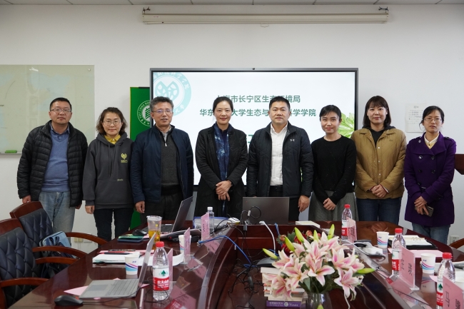 刘婕隆重介绍了与会嘉宾和出席本次会议的学院教师,并对长宁区生态环境局五位嘉宾的来访表示热烈欢迎。