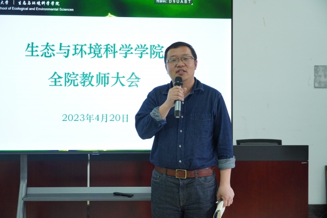 2023年4月20日下午,yl6809永利官网新一届副院长任职宣布大会暨全院教师大会在资环楼148室举行。校党委常委、副校长程静,校党委组织部副部长陈旦锋和学院全体教职工参会,会议由院党委书记刘婕主持。
