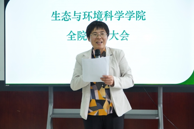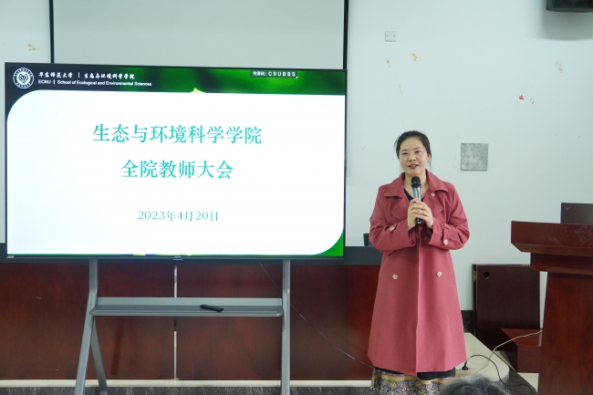 会议第二项议程为全院教师大会,院党委书记刘婕介绍本科审核评估迎评工作进展及要求,她重点介绍学院为迎接本科审核评估工作的主要安排。院长陈小勇老师特别强调本科审核评估的重要性,号召全院教师提高重视、加强协作、形成合力,以新一轮本科教育教学审核评估工作为契机,推动学院本科教学质量再上新台阶。