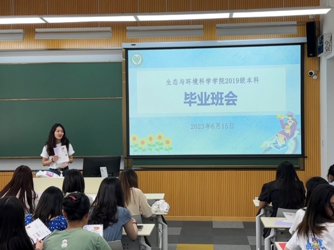 三位毕业班辅导员瞿轶雯、吴丹、姚芳芳分别为毕业生开展主题班会。活动中,辅导员老师以一张张往期活动照片回顾了过去三年或四年的点滴。围绕就业落实、档案转递、落户和户口迁移、党团组织关系转接、离校手续等问题进行了详细梳理和解读,叮嘱毕业生们妥善保存重要文档及个人物品,文明离寝,并着重强调了安全问题。博士毕业生围坐在一起,以“梦想”、“青春”、“拼搏”、“感恩”、“舞台”等为主题词,分享了毕业感言。硕士毕业生书写寄给十年后自己的一封信并寄语学院越来越好。本科毕业生共同叠起一只只纸飞机,承载着梦想与希望,飞往新的人生方向。辅导员为毕业生送上祝福,希望同学们在顺境中趁势而为,在逆境中破浪前行,志存高远、脚踏实地、勇敢探索、追求卓越,把个人的理想追求融入党和国家事业之中,在生态环境领域建功立业,为生态文明建设贡献青春力量。