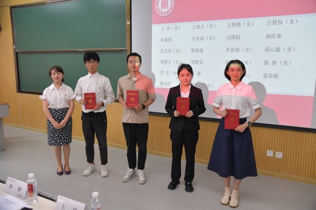 路葵、瞿轶雯、吴丹三位老师为研会优秀干事颁发荣誉证书。