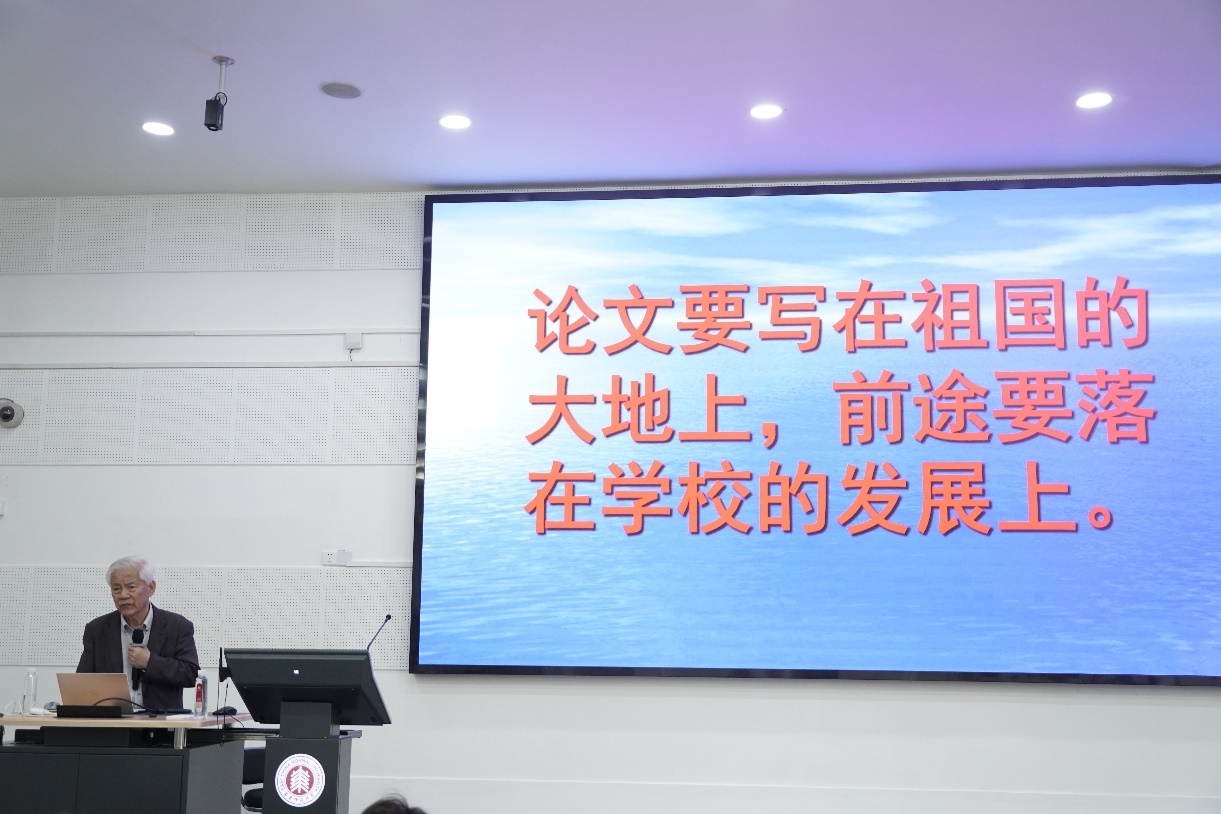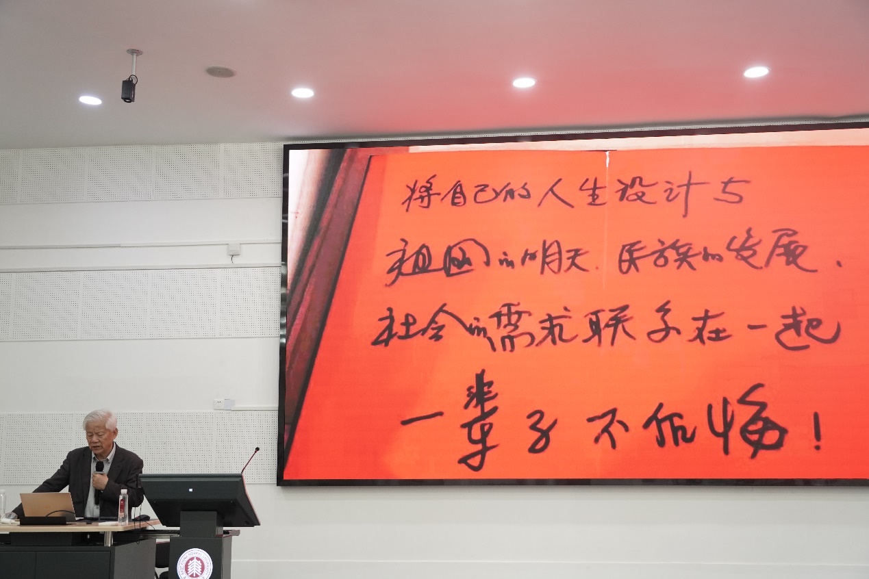 讲座最后,孔海南教授寄语,嘱托同学们 “论文要写在祖国大地上,前途要落在学校的发展上”。这也是孔教授对自己科研生涯的总结,更是对生态环境专业同学的殷切希望,鼓励他们将个人的发展与国家的需要紧密结合,为国家的生态环境保护和可持续发展贡献自己的力量。最后,他为青年学生的题词“将自己的人生设计与祖国的明天、民族的发展、社会的需求联系在一起,一辈子不后悔”,获得了现场师生的一致好评。