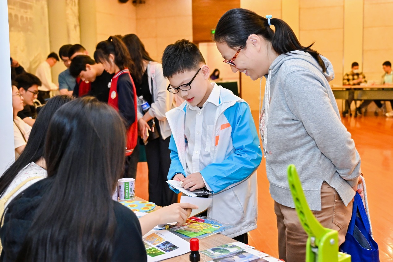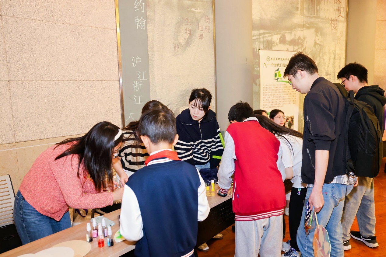 在O3协会的展位旁,同学们兴致勃勃地参与着生态与环境知识竞答。每答对一题,他们便能获得一份特别的惊喜——可能是充满生机的植物盲盒、环保理念的手工包,或是印有师大美景的精美书签。与此同时,小朋友们也在轻松的氛围中,亲手制作干花植物徽章、彩绘植物团扇,在互动体验中领略了生态之美,认识到环境保护的重要性,激发了他们积极参与环保行动的热情。