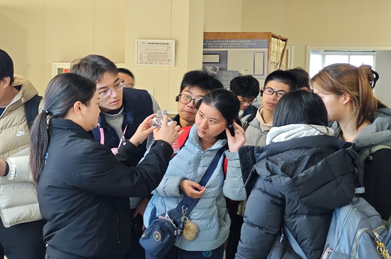 随后,周主管向同学们介绍并参观了英科再生的艺术画及相框产品,它们都是以再生塑料为原料,通过先进技术将废旧塑料转化为高值化的框条等,再加工成各类精美的成品。其产品种类丰富、风格多样,远销120多个国家和地区。