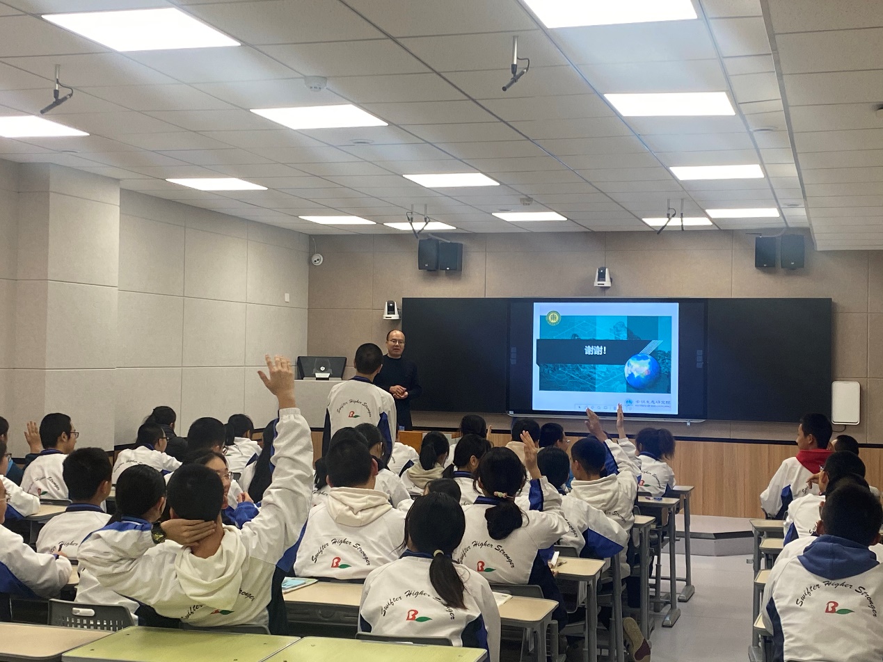 12月9日下午,周小奇一行前往乌鲁木齐市第七十中学,开展了生态文明科普讲座及华东师范大学宣介会。七十中学教研室主任周翠莲、生物教师刘彭以及对生态学科感兴趣的高中生们积极参与了此次会议。王江涛生动有趣地介绍了上海崇明岛鸟类的调查工作以及扬子鳄的保护工作,同学们认真聆听并积极回应,展现出对环保议题的浓厚兴趣和强烈的求知欲。接着,周小奇全面介绍了华东师范大学,包括学校定位、校史沿革、学科设置、科研成果、人才培养等方面。他期待能在华东师大的校园中与同学们相见。会后,同学们与老师们进行了交流,讨论了专业课程安排和就业情况等问题,气氛热烈。