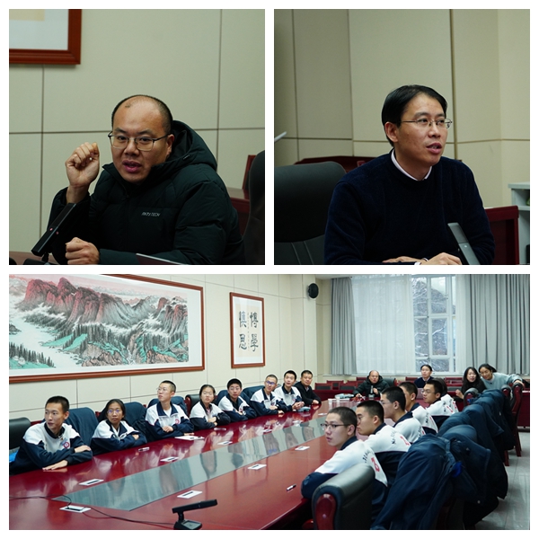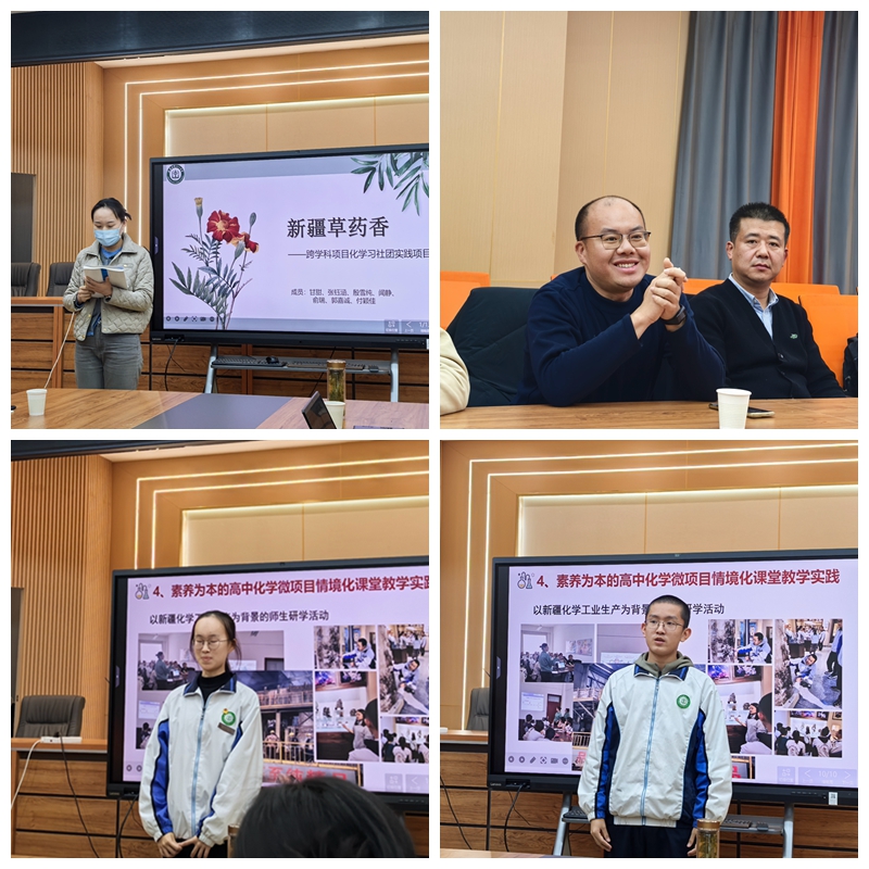 12月10日下午,甘甜携同华东师大崇明生态研究院王江涛、王陆军前往乌鲁木齐八一中学,进行筑梦教育项目的调研与指导。八一中学教研室副主任周静、团委书记马健钧、理科代表教师、乌鲁木齐市实验学校团委书记张文君参加会议。在会议中,八一中学的地理组张钰涵、化学组付颖佳和生物组董琳老师分别从不同角度展示了跨学科项目化学习的实施过程及学生成果。随后,五位高中学生和两位初中学生分享了他们参与社团活动的收获与体会。座谈结束后,王江涛为高一<3>班的同学们做了生动的科普讲座,随后,对华东师大进行了全面介绍,热情欢迎同学们报考华东师范大学。