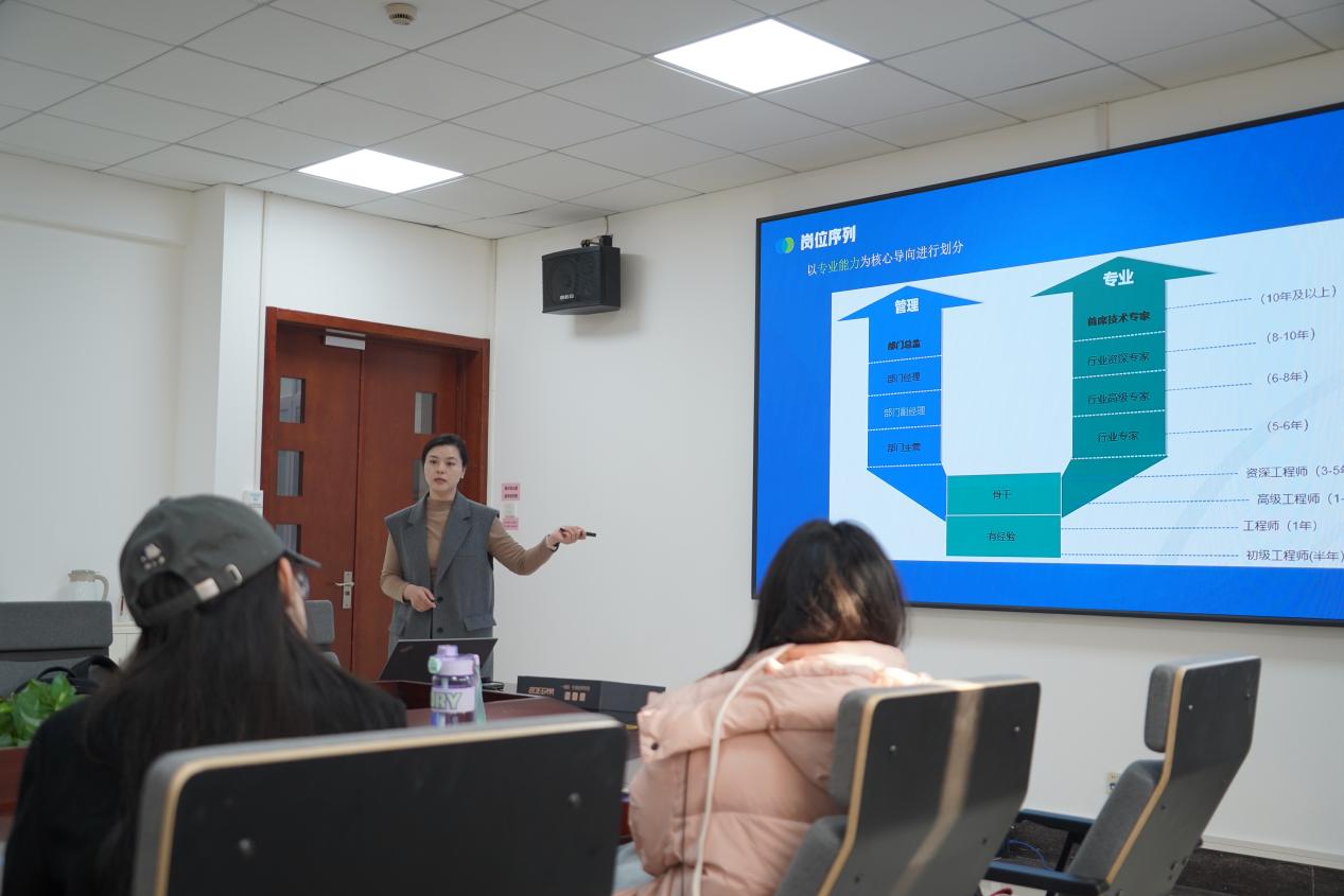 在吴丹简单介绍本次活动之后,赵艳向在场同学详细介绍了公司概况。她表示,苏科环保作为业内领先的环保科技企业,一直致力于环保技术的研发与应用,为加快经济社会发展绿色转型贡献力量。赵艳分享了公司近年来取得的团队成就,包括成功实施的多个环保项目以及荣获的行业奖项。