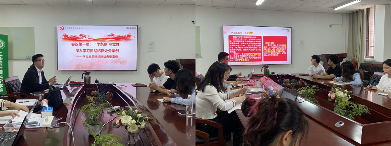 组织委员朱晗彬以“学条例,守党性”为主题带领大家深入学习贯彻纪律处分条例,汇报了学生党员违纪违法的典型案例,包括“违反政治纪律、违反组织纪律、违反廉洁纪律、违反群众纪律、违反工作纪律、违反生活纪律、违法犯罪、违反校规校纪”在内的八项代表性事件,并对照修订后的《中国共产党纪律处分条例》原文,剖析了各项典型案例的违法违纪行为与处罚处分办法,讲解了党员受到处分的具体影响,劝勉大家加强自我革命,用党规党纪指导思想和行动。