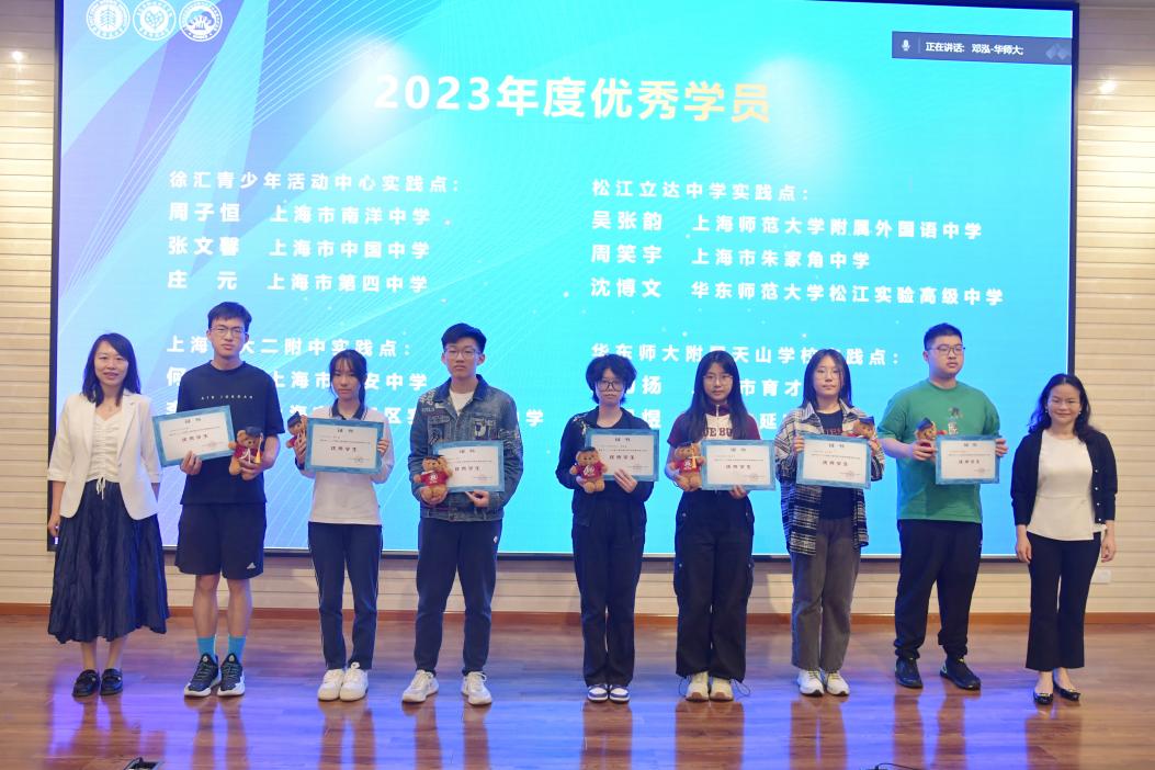 2023年实践工作站共有10位同学获评上海市青少年科学创新实践工作站优秀学生。现场邀请市园科院韩玉洁副院长和上海城市生态重点实验室副主任张秋卓教授为到场的8位同学颁发优秀学员证书。优秀学员代表周子恒同学分享了他在站期间的学习过程、收获与感想。他表示进入实践工作站的学习让他学会站在科学的角度,用科学的思维去看待、去研究他所热爱的东西,更好地认识我们赖以生存的环境。他用一句话总结自己的感想“去感受、去学习、去热爱”,与在场的同学们共勉。