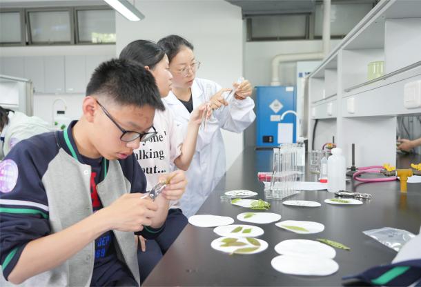 在学习了透明度、溶解氧、pH等水质指标的含义及其在水环境调查中的意义后,他们利用工具和便携式设备对樱桃河水质进行了调查和初步评价,感受到人类活动对城市水环境带来的影响。面对显微镜下微观世界,他们对一滴水中尽然存在如此多样的浮游生命惊叹不已,激发出强烈的好奇心;在校园生态岛近自然林,他们认识了上海的乡土植物,学习了开展植物生态调查的方法,理解了如何用科学的方法保护城市中的生物多样性。通过测定低温胁迫后植物细胞电导率变化,他们学习了植物如何响应和适应不利的生存环境,理解自然选择中的生存策略。当看到日常丢弃的秸秆竟然也能变废为宝成为优良的种植基质时,他们感受到科学技术“点石成金”的魅力。同学们在通过近距离接触科研活动,亲身感受科学奥妙的同时,也体会到了分工合作,共同完成科学探究的无限乐趣。