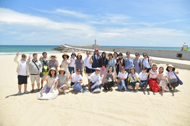 途中去了位于陵水黎族自治县东南部的清水湾。清水湾风景绝佳,可同时观赏到清水、白沙、奇岭、怪石。“开心团”老师们特地带上了华师大的吉祥物“小花狮”,让“小花狮”也一起领略美丽的海岛风光吧。