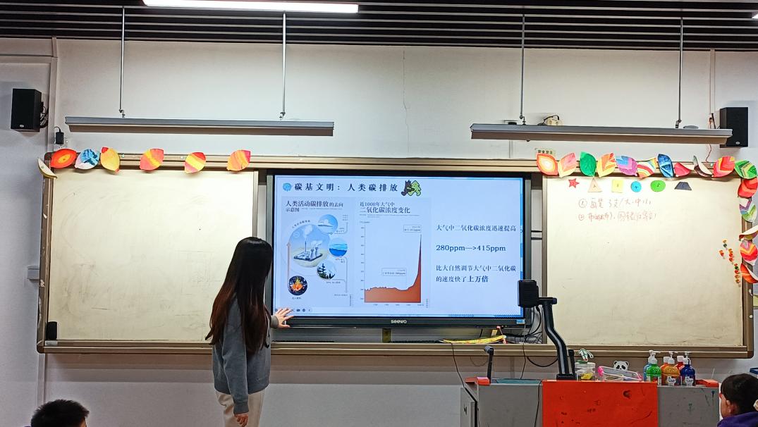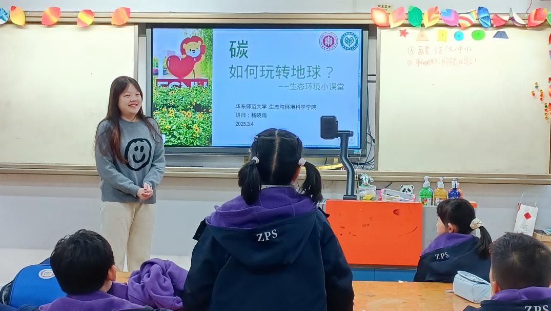 2025年3月4、5、6日下午,生态环境小课堂讲师团前往华东师范大学附属紫竹小学、永德学校、马桥民办小学开展环教课,本次环教课的主题为“碳如何玩转地球”,担任本次课程的讲师为杨晓雨、黄立鹤、苏雅日哈乐同学。