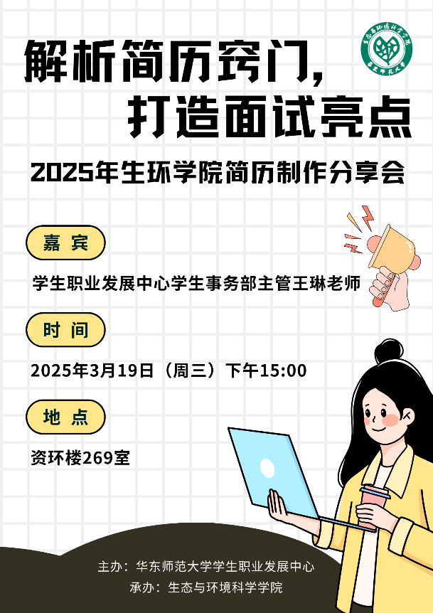 活动伊始,王琳老师围绕“生环院学生毕业去向情况”“简历制作与投递” “面试准备”这三个方面展开讨论。首先,王老师结合当前生态与环境专业学生的就业现状,详细剖析了契合生态环境领域的多元就业方向,为同学们指明了多条切实可行的职业发展道路。
