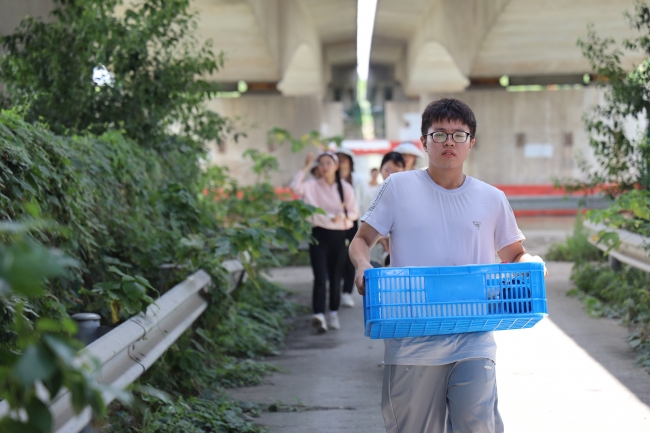 今天我们顶着炎炎烈日在太浦河边采水样、测水质,起初我们的仪器出现了一些问题,测出的溶解氧数据很不合理,反复检查后终于找出了问题根源。随着一次又一次采样及测量的完成,我们逐渐形成了有序的流水线模式,分工越来越明确、操作越来越娴熟、效率也越来越高。下午我们去到了上师大野外观测站,它身处长三角一体化发展示范区,强调要从流域尺度来分析问题,为学生们的科研提供了有力的场所支持。