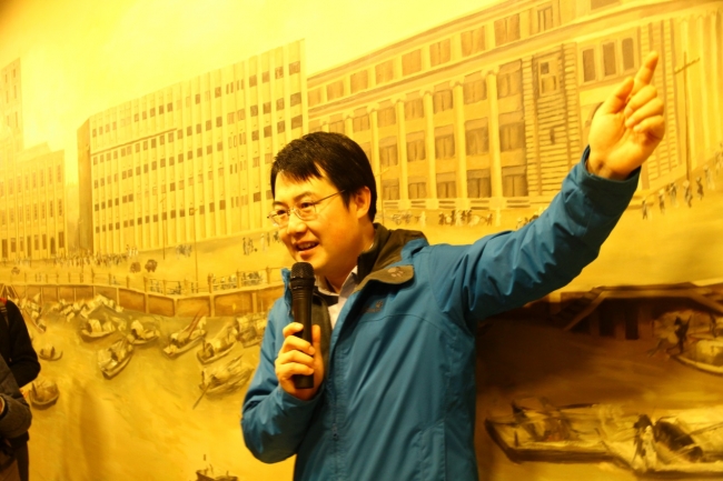 在馆内张勇老师进行介绍青龙镇——上海港口城市的雏形