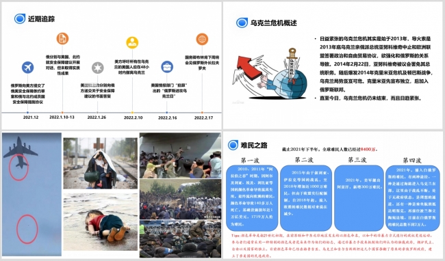 在《乌克兰危机和欧洲难民问题》分享中,吴丹老师为大家分享了当前国家政治热点问题乌克兰危机。她首先为大家展示了围绕乌克兰危机,相关国家采取的一些行动,梳理了乌克兰危机发生的时间线。与此同时,她也深入剖析了危机产生的历史、政治、经济等多方面的原因,以及北约东扩对危机的影响,并就乌克兰危机谈了自己的体会:“打铁还需自身硬,发展实力才是硬道理。希望乌克兰能够改变寡头政治和寡头经济的局面,惩治腐败,真正治理好自己的国家。同时也希望乌克兰危机能够在联合国和有关各方的努力下得以解决,维护地区的和平与稳定。”随后,张琪老师为大家分享了欧洲难民问题,她为大家介绍了欧洲难民问题的根源和实质,从2010年到现在四波难民的流入对欧洲的影响,以及联合国、美国、欧洲各国对难民危机的态度。最后,她也从政治、经济和人文方面提出了难民危机的出路。