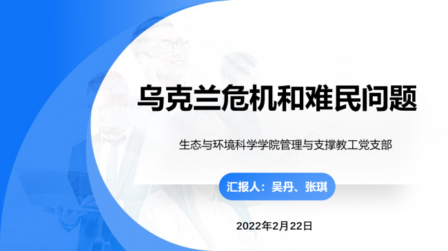 2022年2月22日下午,yl6809永利官网管理与支撑教工党支部在资环楼146举办第四场寒假学习分享主题活动,分享人是陈然、吴丹和张琪老师。陈然老师分享的主题是《正风反腐,必须“零容忍”》;吴丹和张琪两位老师组成小组,分享的主题是《乌克兰危机和难民问题》。