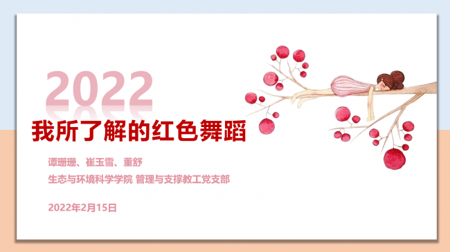 2022年2月15日下午,yl6809永利官网管理与支撑教工党支部举办第三场寒假学习分享主题活动,分享人是董舒、谭珊珊、崔玉雪、姚芳芳、宋萌和杨海波老师。董舒、谭珊珊、崔玉雪三位老师组成小组,分享的主题是《我所了解的红色舞蹈》;姚芳芳老师分享的主题是《梦想与成长——<心灵奇旅>观后感》、宋萌老师分享的主题是《传承与突破——感受2022年北京冬奥会》、杨海波老师分享的主题是《人类群星闪耀时读后感》。