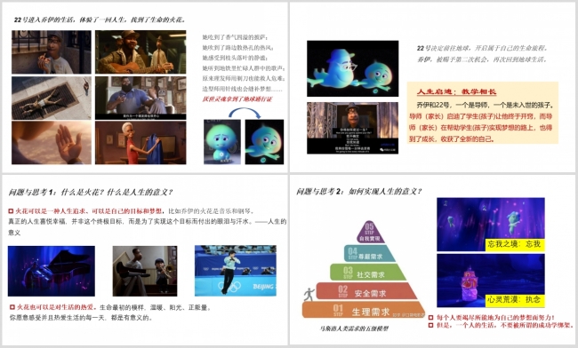 在《梦想与成长——观<心灵奇旅>有感》中,姚芳芳老师分享了电影《心灵奇旅》里梦想成为爵士钢琴家的乔伊·高纳与厌世的灵魂22相遇,携手返回现实世界寻找生命的意义的故事。姚老师结合马斯洛需求层次理论,和自己五年的学习钢琴的经历,跟随故事的主人公一起走进心灵深处,探索生命的火花、生活的价值、以及如何实现自我。人生的意义来自实现梦想过程中的成就和喜悦感,也来自平凡生活中的小确幸。我们需要为梦想而努力,也需要热爱生活、珍惜生命的每一天。最后,姚老师结合影片分析了如何做孩子的心灵导师。她认为带领孩子体验生活比单纯的教诲和灌输更有效;否定和打击会让孩子失去生命的火花;认可孩子的情绪比和孩子“硬碰硬”更重要;同时父母要学会接受孩子的平凡,不对结果与目标抱有执念,父母更应该重视陪伴以及和孩子的共同成长。