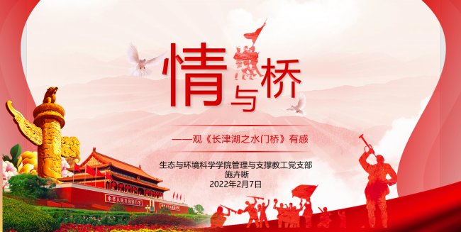 在《情与桥——观<长津湖水门桥>有感》中,施卉晰老师分享了2022年春节期间上映的电影《长津湖水门桥》的观后感。在电影的基础上,施老师还结合《冰血长津湖》、《血色军魂—长津湖战役纪实》、《长津湖战役》等影片和纪录片向大家详细介绍了长津湖战役这段波澜壮阔的历史,使支部党员对抗美援朝战争有了更深刻的认识,对该段历史脉络有了更清晰的了解。结合中国桥文化的历史、桥在战略中的重要地位,施老师向大家讲述了红军飞夺泸定桥、七七卢沟桥事变、解放上海中的四川路桥激战等几场和桥相关的重要战役。“为了下一代人不打仗,我们的任务就是打完这场仗,带他们回家……” 在感受到战争残酷的同时,更要明白如今盛世是无数中国军人的牺牲换回来的。时至今日的冬奥会,强大的国家让我们能够自信地展现出中国人的风采。大家被志愿军战士的钢铁意志和英勇无畏的战斗精神,体现出的爱国主义精神深深震撼和感动,是一次深刻的党性教育和精神洗礼。