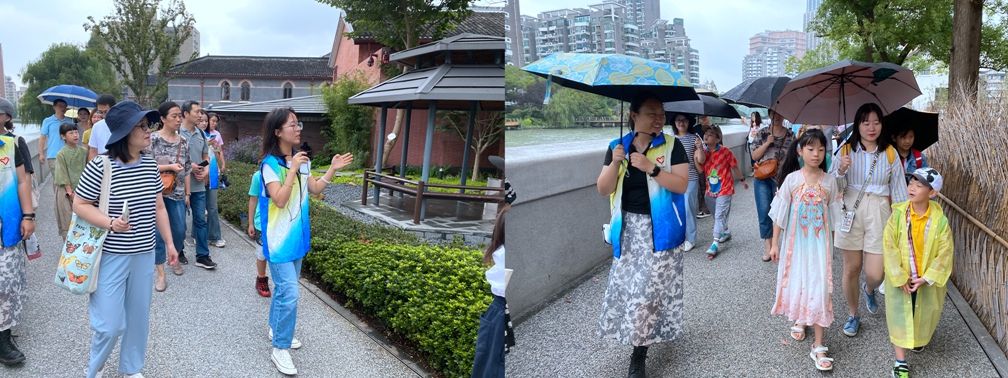 2023年9月30日上午,在中秋国庆双节同庆之际,yl6809永利官网“小水滴”志愿者陈举艳、朱颖璨前往苏州河华政段担任讲解员,开展一场独特而具有意义的讲解活动。此次活动旨在为报名参与的亲子家庭提供一个深入了解苏州河历史与生态的机会,同时带领他们沉浸式体验苏州河华政段的别样风光。