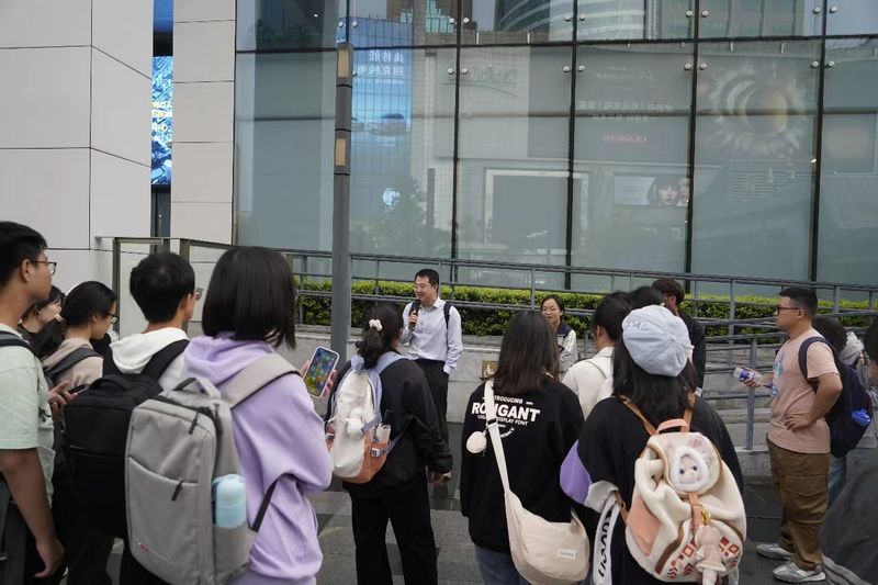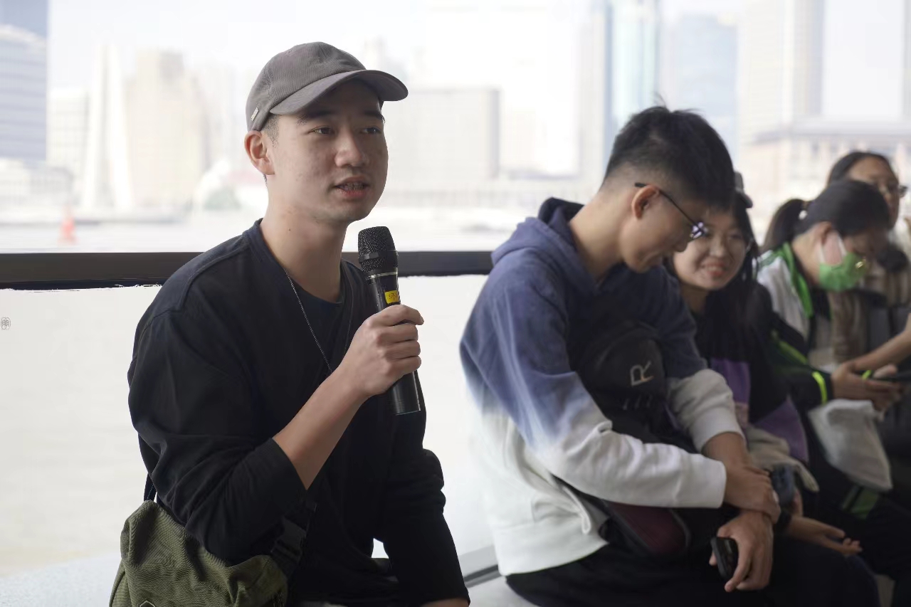 在滨江大道稍事休息的同时,几位上海本地同学向大家讲述了本地人眼中的上海并推荐了一些值得参观的景点。