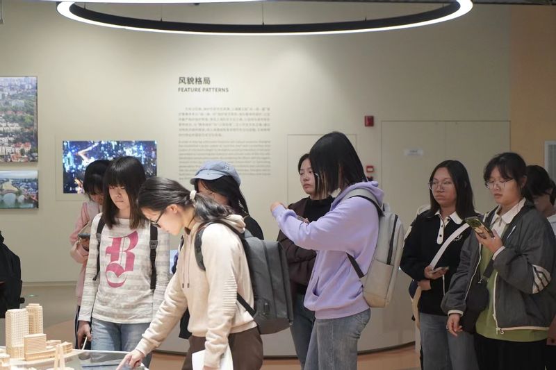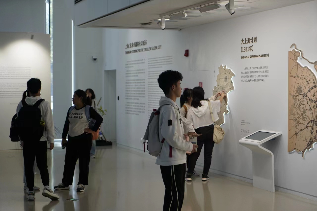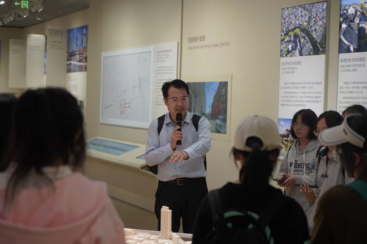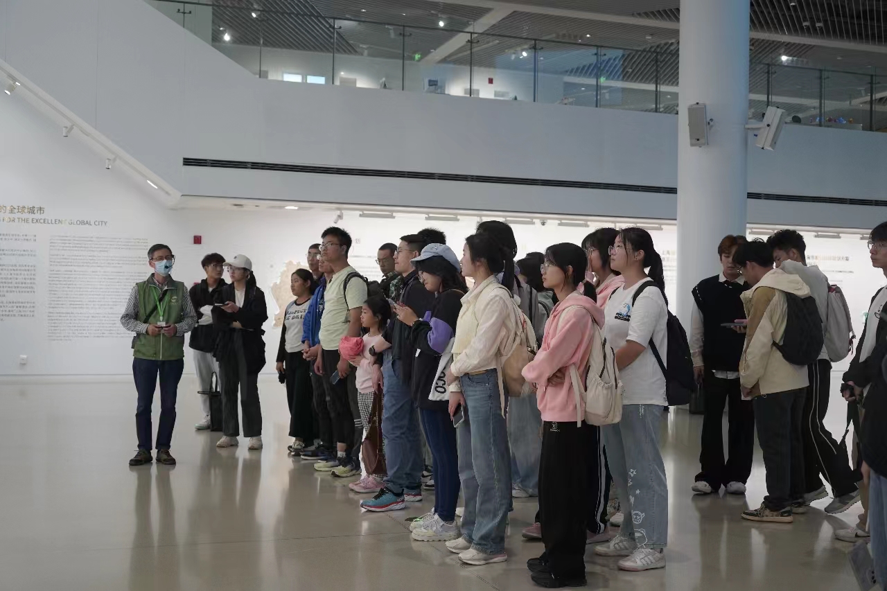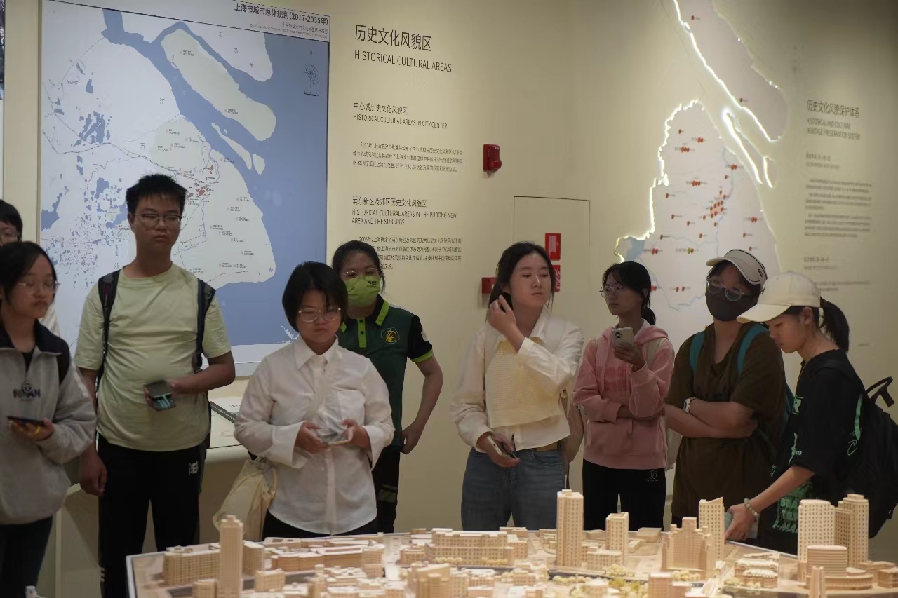 下午14:30,同学们在上海城市规划展示馆开启了下午的课程实习。进入馆后不久,师生一行赶上了三点钟的免费官方讲解,在解说员的讲解下,同学们对上海的发展历程与城市定位有了进一步的了解。