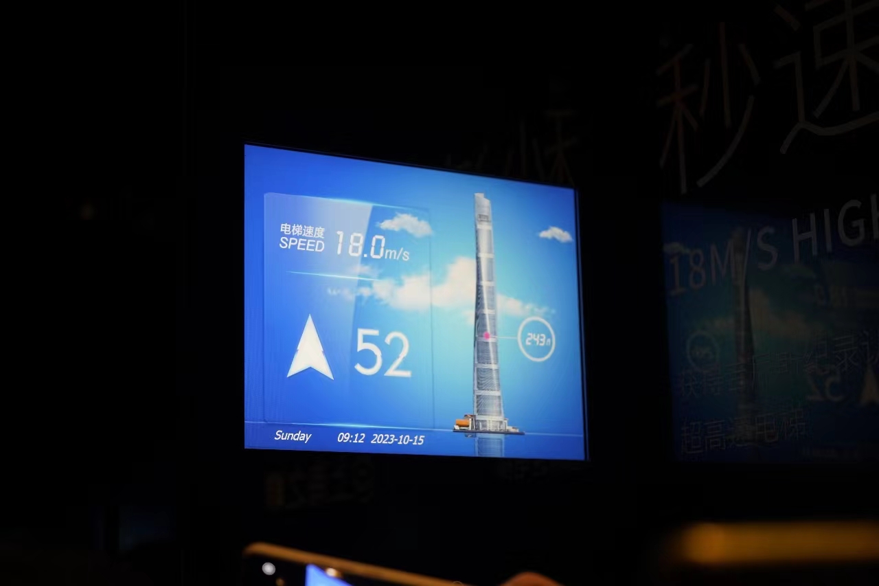 在参观完展厅后,同学们乘坐世界上速度最快的电梯,仅耗时55s就到达了118层,其最快速度可达18m/s。一下电梯,便来到了“上海之巅”。从观光厅往下看,曾经的十里洋场、黄浦江、苏州河、繁华的大上海尽收眼底。