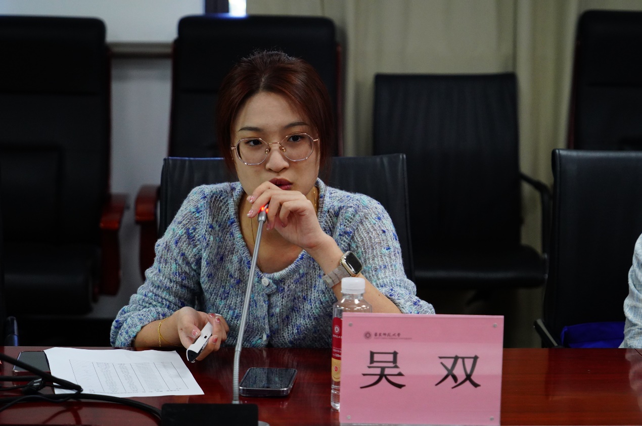 第二位分享嘉宾吴双,三年前进入上海市奉贤中学,成为一名高中生物老师。她首先介绍了自己在师大期间的个人经历和一名高中生物教师的工作日常。她认为,作为一名青年教师,要对工作抱有热忱之心,不断培养自己的科学思维,积极参加各种培训活动来提升自我。随后,她从教师资格证的考取、招聘信息的获取、教师的应聘流程等方面进行经验分享。她表示非师范生可以通过教育机构或学校实习、支教等途径来丰富教学经验,提升教学技能;在应聘过程中,她强调要关注官网发出的时间节点,多了解考试的内容,认真准备笔试和面试。最后,她建议同学们在熟悉教材的基础上,关注学科新进展,了解学科核心素养,努力成为一名研究型教师。
