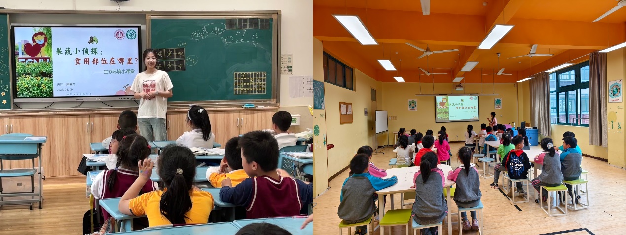 2025年4月8日、9日、10日下午,yl6809永利官网生态环境小课堂讲师团携手研会秘书部成员,分别前往紫竹小学、永德实验小学和马桥民小,为同学们带来了“植物食用部位科普”主题环教课。此次活动的三位讲师黄馨怡、牛丽雲和张雨婷,通过丰富有趣的教学方式,带领同学们共同探索植物的奇妙世界。