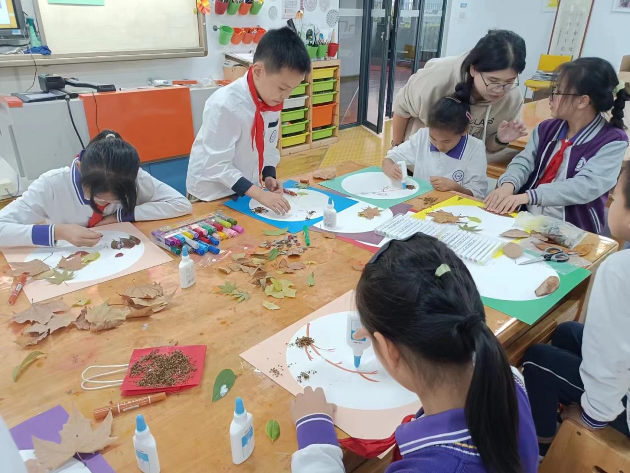 本次环教手工课,不仅让同学们留下了秋天的色彩,还提高了他们的实践动手能力。希望在本次课程的学习和实践后,能焕发出他们对自然美的感知力,运用自己的一双巧手,让秋天“跃然纸上”。