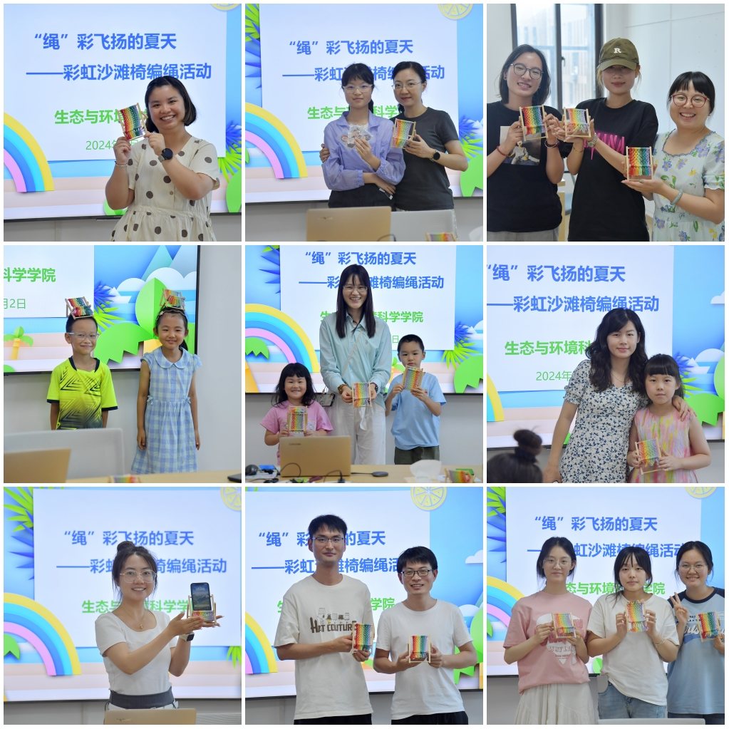 为丰富师生暑期文化生活,在炎炎夏日放松一下身心,2024年8月2日下午,yl6809永利官网在资环楼435开展了一场师生共同参与的手工编绳活动,自己动手制作一个漂亮实用的彩虹沙滩椅手机支架。活动共有近30名师生共同参与。