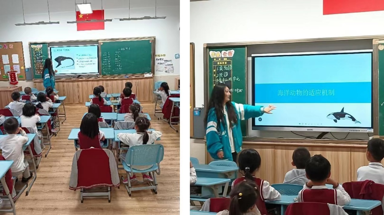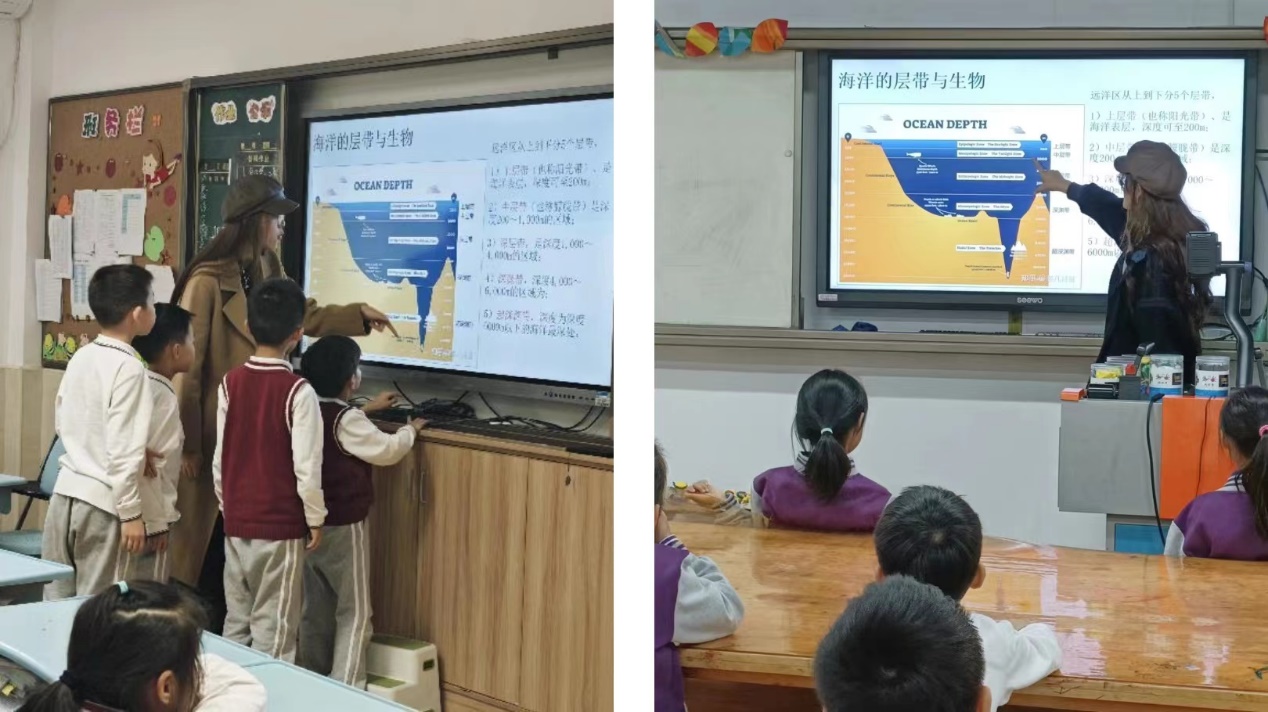 2023年11月7日、8日下午,生态与环境小课堂讲师团前往华东师范大学附属紫竹小学、永德实验小学开展环教课,主题为“海洋生态问题”,担任本次课程的讲师为顾思雨和唐逸倩同学。