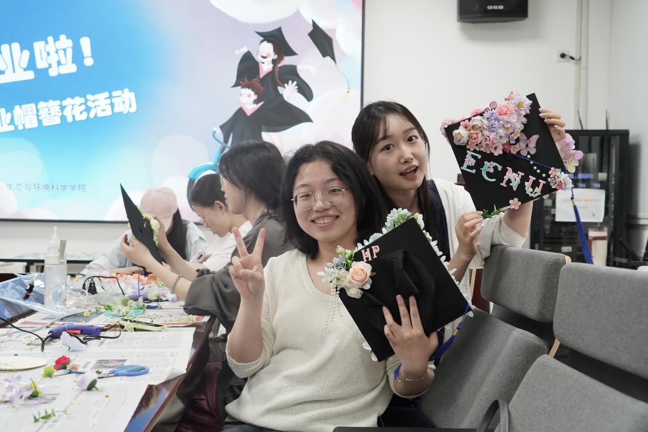 本次学位帽簪花活动为毕业生提供了独一无二的毕业纪念,传递了学院对每一位学子的真挚祝福:愿每位毕业生带着“帽上繁华”的美好寓意,未来的旅途“一路生花”,心怀热忱奔赴人生新起点。