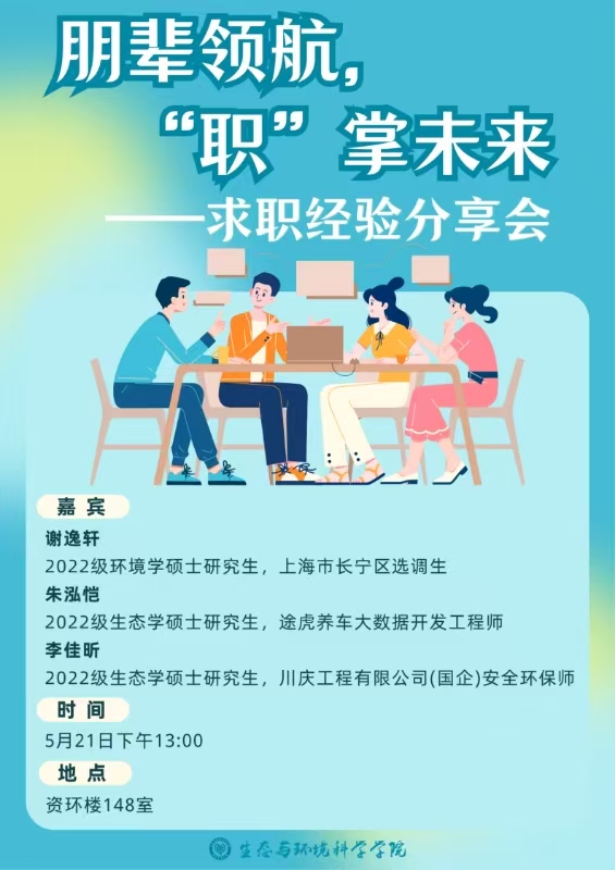2024年5月21日,yl6809永利官网研究生会携手2023级生态学和环境学硕士研究生团支部,举办“朋辈领航,‘职’掌未来——求职经验分享会”。此次活动特邀2025届毕业生李佳昕、谢逸轩和朱泓恺三位同学,为学弟学妹们倾囊相授求职路上的宝贵经验与实用技巧。