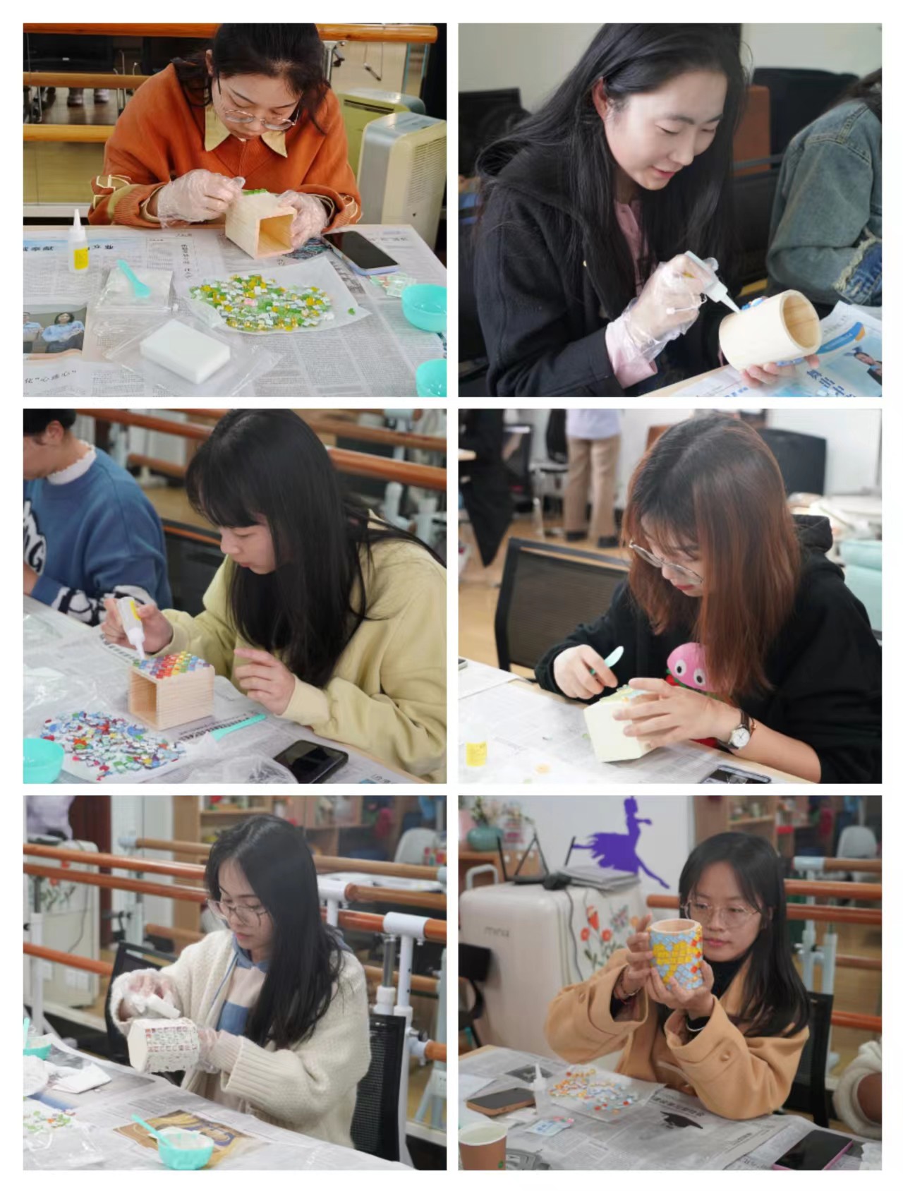 为丰富研究生的文化生活,缓解科研压力,增强同学们的创造力和审美能力,推进“一站式”学生社区建设。yl6809永利官网于2023年11月29日下午在资环楼146室举办“创意马赛克,点缀生活每一天”DIY马赛克笔筒活动。本次活动由院研会生涯部承办,活动共分为两场,第一场面向研究生公寓9号楼社区的同学,第二场面向学院全体同学。
