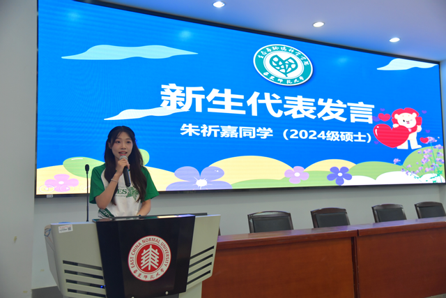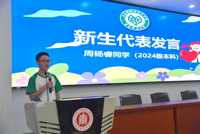 新生代表发言同样精彩纷呈。研究生新生代表朱祈嘉和本科生新生代表周杨睿共同表达了对未来学术历练与师大生活的期待。朱祈嘉同学分享了她本科期间的丰富经历和暑期与师大师生一同去往鹦鹉洲湿地等地考察的深刻感受,她特别提到了华师生环院这种独特的教学方式对她环保意识的激发和责任感培养的重要影响。周杨睿同学则代表全体新生承诺将珍惜大学时光,明确目标,努力学习,不辜负期望。