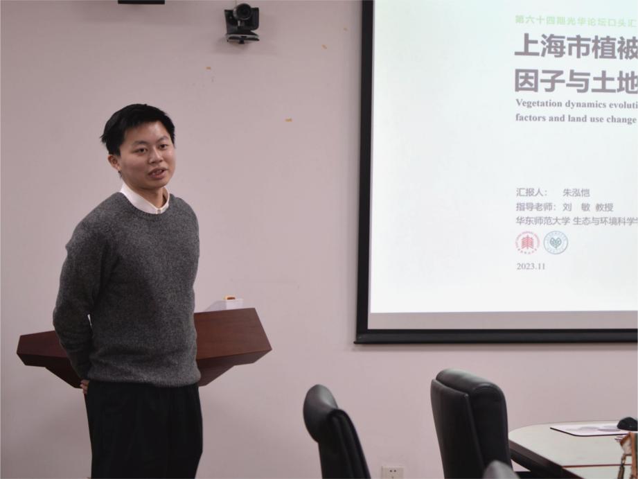 开场是由来自刘敏老师课题组的朱泓恺同学带来的口头报告,他的报告题目是《上海市植被动态演变及其对环境因子与土地利用变化的响应》。该同学基于Landsat卫星遥感影像获取的上海市逐像元增强型植被指数(EVI),结合空间分析方法、M-K趋势检验及城乡梯度划分,分析上海市植被动态演变。并且进一步构建像元尺度上环境因子和土地利用变化对植被动态影响的框架,解析上海市植被动态演变空间分异的主导因子。第二位汇报人是来自陈雪初老师课题组的罗春晓同学,她带来的进展快报题目是《通过将植被纳入洪水防御系统来降低成本》。这项研究结合地球观测数据和流体动力学模型,考虑波浪与植被的相互作用,评估了海岸盐沼植被、红树林的存在如何让全球海岸保护成本降低。上半场最后一位汇报人是来自陈小勇老师课题组的史亚蝶同学,她口头报告的题目是《上海城市绿地为中华蜜蜂提供“庇护所”——从种群遗传学视角》。研究表明,上海城市绿地中华蜜蜂有较高水平的遗传多样性,有利于中蜂对多变、复杂城市环境的适应。并且中蜂种群遗传分化程度低,破碎化的绿地并未显著影响其种群遗传分化,这与中蜂较强的飞行能力、飞行距离远有关。