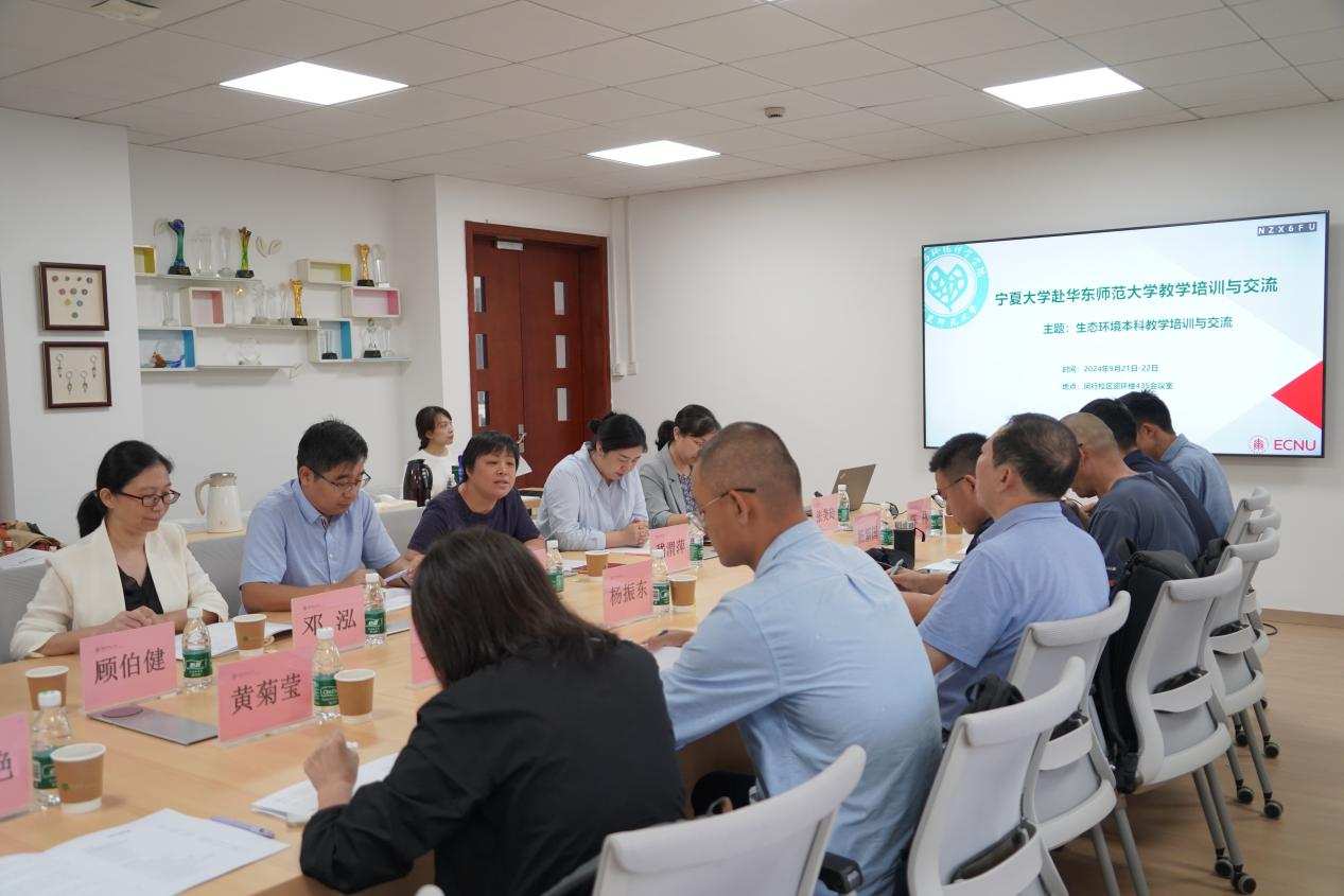 2024年9月21日至22日,宁夏大学生态环境学院党委书记杨振东带领生态学支部书记马飞等八位教师代表来我院参与本科教学培训与交流活动,活动在资环楼435会议室开展。学院党委书记嵇渭萍、院长陈小勇、副院长徐娟、专业点责任教授周小奇、生态学系主任邓泓、环境学系主任张勇、生态学教工党支部书记郑泽梅、舟山岛屿生态系统野外科学观测研究站站长阎恩荣、刘敏教授、宋坤副教授、张颖副教授等青年教师参加本次活动。会议还邀请我校教务处副处长刘俊升以及第四届全国教师教学创新大赛一等奖获得者张美玲教授做主题报告。本次培训与交流聚焦于教学改革、卓越人才培养、科研团队建设、课程建设等多个方面,旨在推动双方在教育领域的深入合作,提升青年教师教学水平。