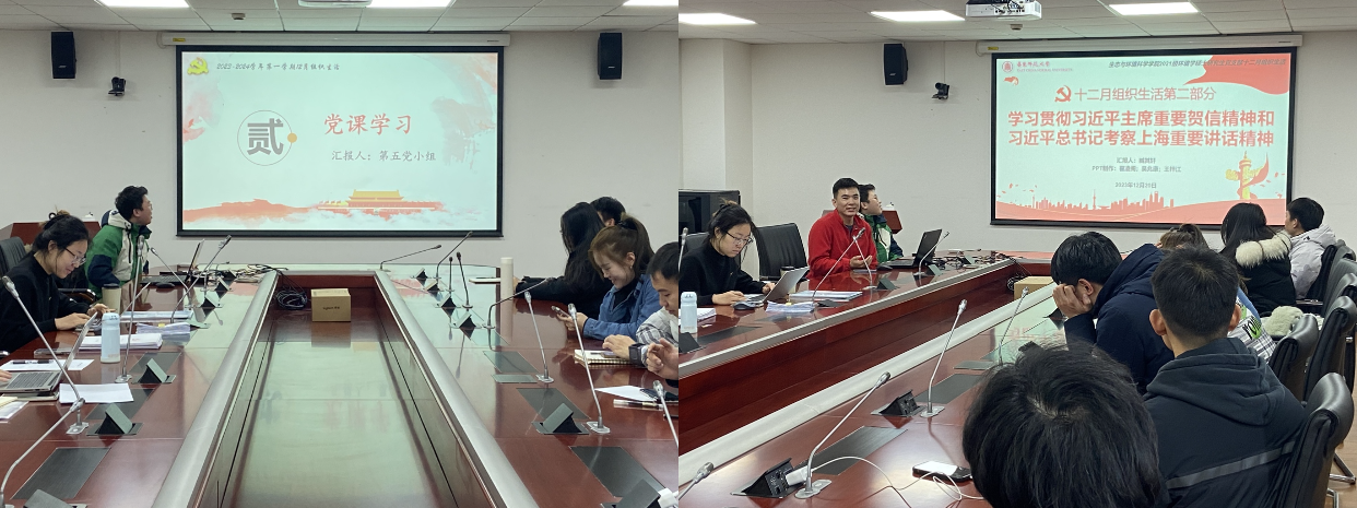 为了认真学习领会习近平总书记重要讲话精神,深入学习贯彻党的二十大精神,全面学习贯彻新发展理念,2023年12月20日,yl6809永利官网2021级环境学硕士研究生党支部于闵行校区资环楼345室开展十二月组织生活。本次活动以“学习新思想,争做新青年”为主题,包括“时政要闻分享、主题党课学习”两个环节。本次活动由第五党小组主持,全体党员到场参会。