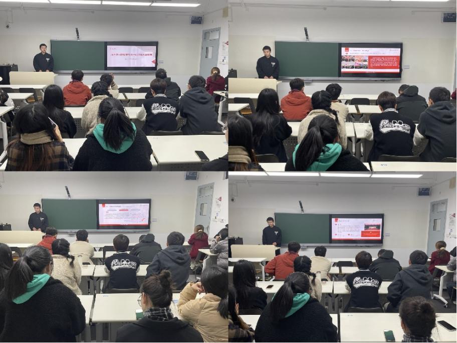 孙金浩同学从大会概况、报告内容、贯彻落实为切入点,解读了学校第十四次党代会的丰富内涵。结合报告,向同学们介绍了过去五年学校在各项事业发展上取得的扎实成绩和宝贵经验,使同学们对学校的发展有了更为清晰的认识。同时在讲解学校第十四次党代会内容时,特别强调了心怀“国之大者”,坚定追求卓越的鲜明主题,鞭策全体同学时刻保持坚定思想引领,夯实信仰之基,提升全面素质能力,心怀“国之大者”,把握大势,敢于担当,善于作为,为服务国家富强、民族复兴、人民幸福贡献力量。