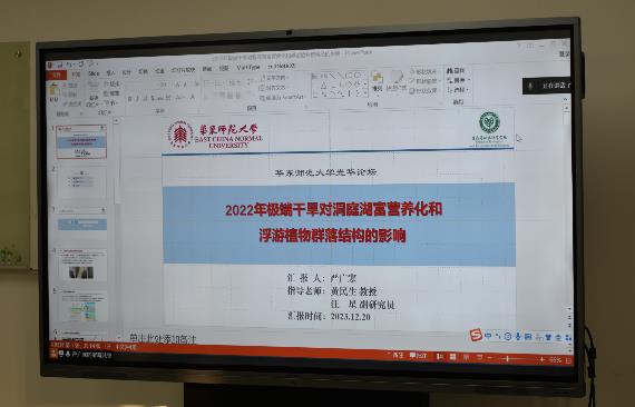 下半场第一位汇报人是来自曹承进老师课题组的张韵宇同学,他口头报告的题目是《河流-水库群水体生态健康评价研究——以北江中下游为例》。张韵宇同学通过构建生物完整性指数的方法来评价北江中下游水体的健康状况。结果表明:(1)北江中下游在7月鉴定出的浮游藻类种数最多;(2)飞来峡水库附近的浮游藻类平均丰度和生物量低于白石窑电厂水库和清远水利枢纽;(3)从健康评价结果上看,后验法比前验法有更广的分布范围。第七位汇报人是来自马黎萍老师课题组的戴银滢同学,她报告的题目是《水产养殖业的细菌耐药性污染研究》。近年来水产养殖产品需求增多,水产养殖环境必须要得到质量报站。而抗生素的使用导致细菌耐药性问题严重。抗生素进入生物体内后会促使ARB和ARGs的产生,最终降低其治疗潜力。戴银滢同学通过文献调研,梳理了水产养殖中的主要抗生素和ARGs及其分布规律,以及抗生素替代产品的研究,还归纳了不同国家针对水产养殖业细菌耐药性的管理策略。第八位汇报人是来自黄民生老师课题组的严广寒同学,他口头报告的题目是《2022年极端干旱对洞庭湖富营养化和浮游植物群落结构的影响》。本研究基于三口、四水、区间、西洞庭湖、南洞庭湖、东洞庭湖的水质理化指标、浮游植物密度和群落结构等,分析极端干旱事件对洞庭湖的影响。研究表明:(1)2022年夏秋连旱期间洞庭湖水生态风险加剧;(2)干旱期间,保障水文连通性是促进能量流动、物质循环和水生态系统健康的前提条件。第九位上台的汇报人是来自何岩老师课题组的黄尧同学,他报告的题目是《混合营养型脱氮技术中试应用进展》。在“城镇污水处理提标增效三年行动方案(2019-2021年)”以及 “双碳目标”等政策实施的大背景下,黄尧同学基于混合营养型耦合脱氮技术,开展生产性实验研究,发现该技术原料易得成本低廉,碳源释放量较少,使用寿命长,可显著降低运行成本。最后一位汇报人是来自陈超老师课题组的张帆同学,他向大家介绍的文献题目是《秸秆提高纳米零价铁在储存和降解污染物过程中耐O2性能的机制》。张帆同学以部分去木质素秸秆为载体,构建了在制备、储存和反应过程中具有抗O2性能的秸秆基纳米零价铁(SS/Fe)。NZVI在秸秆中均匀分布,Fe0颗粒被木质素缠绕并形成三级结构,这不仅提高了SS/Fe在空气暴露中的耐O2性能,还提高了SS/Fe在降解2,4-DCP过程中的耐O2性能。