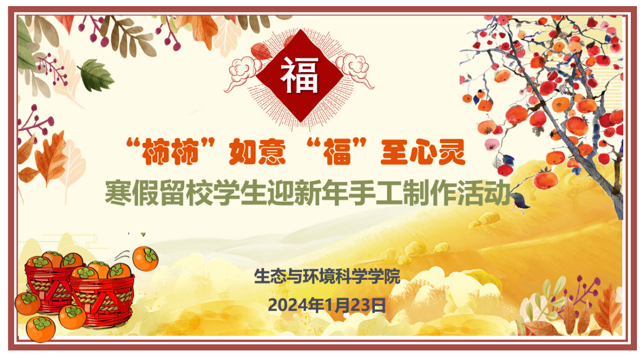 为弘扬传统文化,丰富寒假留校学生的文化生活,2024年1月23日下午,在闵行校区资环楼269,yl6809永利官网开展“柿柿”如意树手工制作和创意“福”字书写活动,象征着新的一年“柿柿”如意、福气满满。