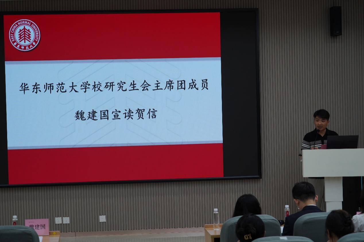 随后,华东师范大学研究生会主席魏建国同学宣读贺信。魏建国同学在贺信中高度赞扬了yl6809永利官网研究生会在过去一年中积极参与校院活动、服务同学成长、繁荣校园文化方面取得的优异成绩,并期待未来校院两级研究生会继续深化交流合作,携手共进,共同服务好全校研究生同学。